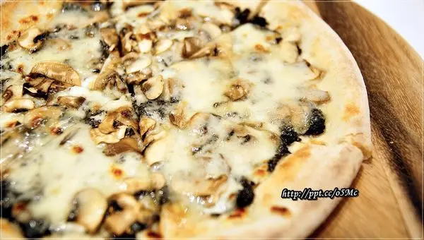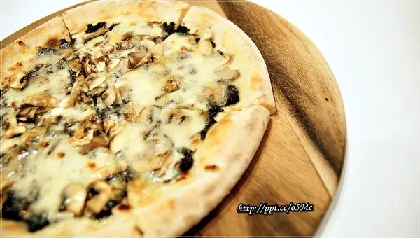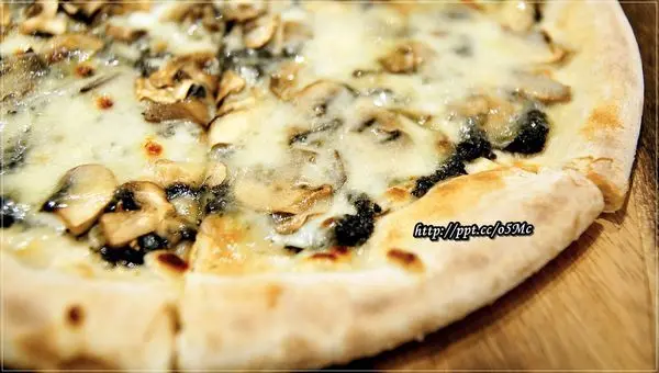 上頭滿滿的野菇料,用松露油及梵提娜乳酪製成