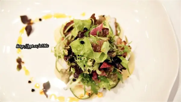 這道開胃菜的沙拉也真的是太美囉,剛好可以解解前面主菜的油膩感