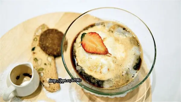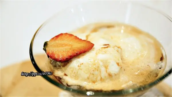 服務人員貼心的將咖啡倒入冰淇淋中,吃起來的口感苦澀中帶點甜