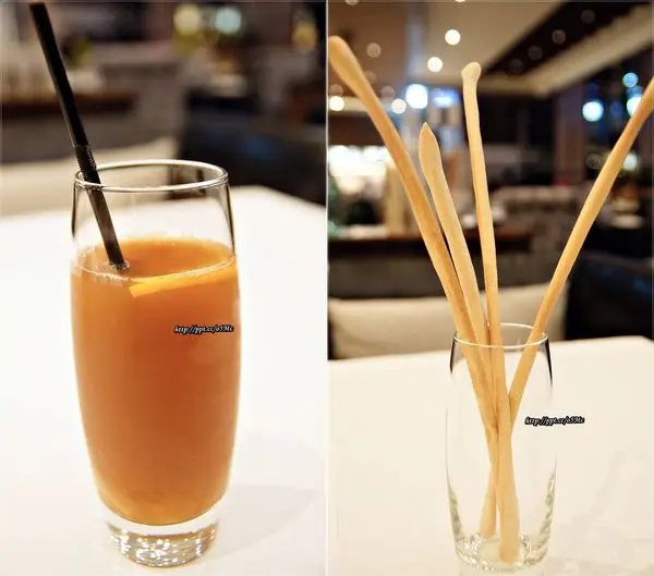 我們一坐下,服務人員就先送鮮果茶+餅乾