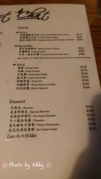 店裡主要販售品項為千層麵,燉飯,早午餐,法式吐司,甜點以及一些炸物小點