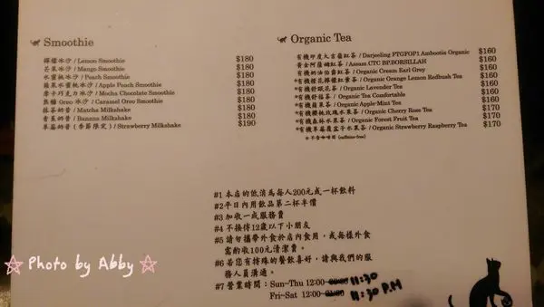 店裡低消是200/每人或飲料一杯,加收一成服務費