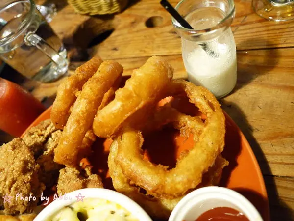 誰知道一上桌,我們看到洋蔥圈就驚呼連連(鬼吼鬼叫~)