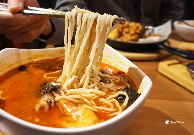 使用的麵條和炸醬麵是一樣的,Q彈帶點咀勁,吸飽湯汁後口感超棒。