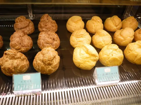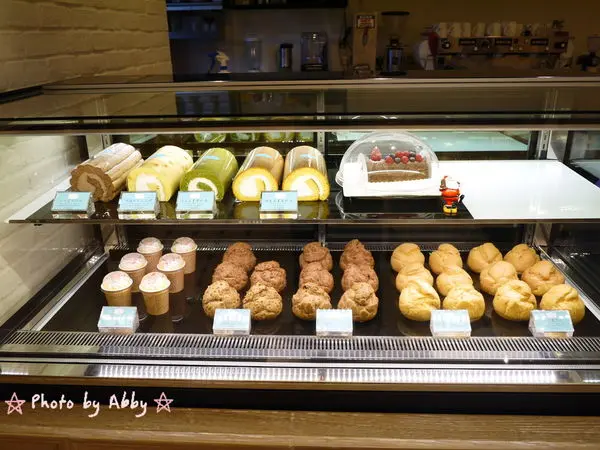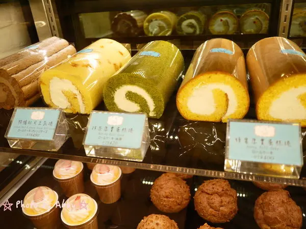 蛋糕櫃上蜂蜜蛋糕捲,超厚年輪蛋糕,卡士達泡芙等等全部都完美到位~