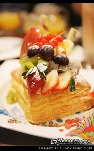 千層派的疏鬆度其實還算普通,水果搭配的也很季節與美度,但是我最愛的是他的優格冰淇淋還滿濃郁帶些許的微酸口感,會讓人一口接著一口品嚐。整體度與美味度:★★★☆☆