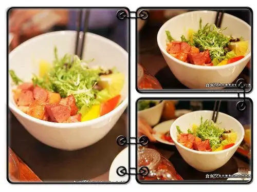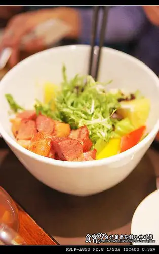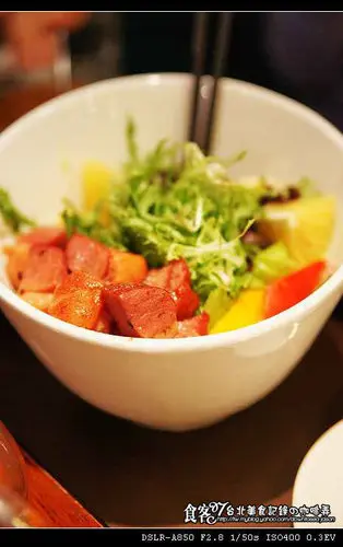 店內新菜色唯一有沙拉的,店家的燻鴨很嫩大小剛好是一口,煙燻得剛剛好,生菜方面有很特別的羅蔓、甜椒還有香吉士與一些特別的生菜,品嚐起來有些與的微酸與沙拉醬,建議可以將所有的生菜搭配燻鴨塊一塊下肚風味真的是一絕,加上份量真的不少還滿多的。★★★★☆