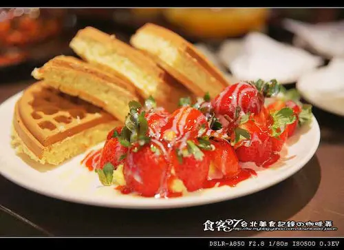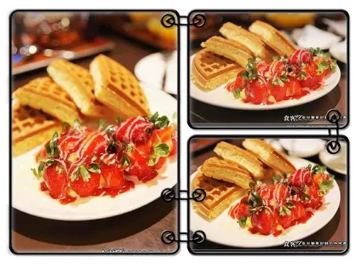 大量的草莓醬的草莓冰淇淋與奶油球,搭配簡單的鬆餅,鬆餅的外表酥脆度算是適中,脆度來說如果在好一點會更完美,內餡的味道屬於表示清淡但不是沒有沒有味道的清淡,而是一種簡單的鬆餅甜度吃起來負擔不會太重,份量來說一個人吃剛剛好也不會太甜而產生膩。整體度與美味度:★★★★☆