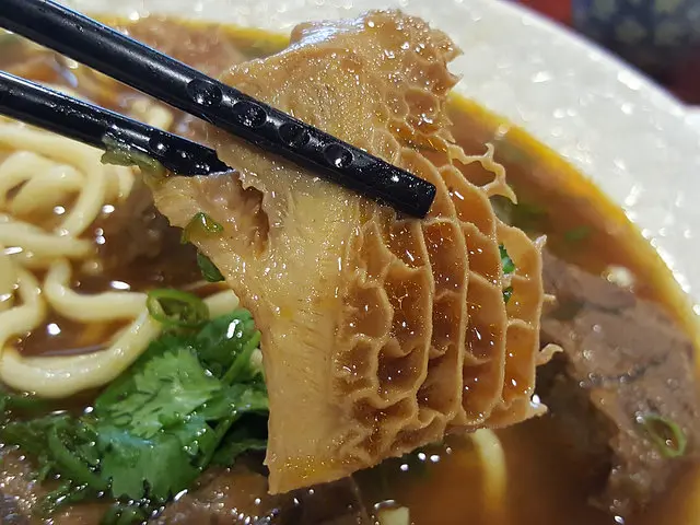 店內的滿漢紅燒牛肉麵是由4塊澳洲牛腱心肉+4塊牛肚+2塊牛筋,所組合成的