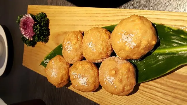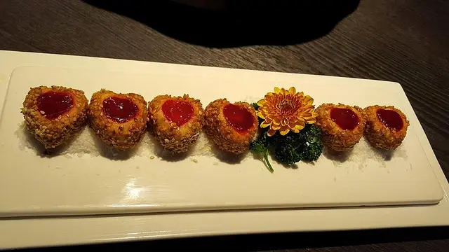 頂級牛肉與杏果、鮮蝦所製成的鮮美,搭配海苔與椰子粉的美味組合,滋滋爽口。