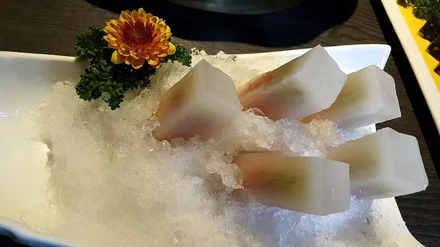 半透明,吃起來潤滑的美味水晶棒,內餡為當日黃金六兩的,與鮮蝦魚漿、野菜競飄鮮美卻有不搶彼此好滋味,火鍋與冰棒的組合,為之驚艷的口感,細膩卻有大驚喜