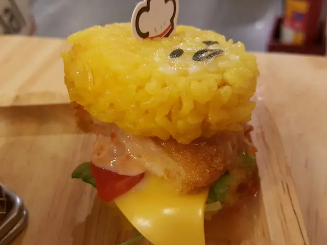 ▲馬卡龍米漢堡上的主廚帽其實是一根固定食材的牙籤