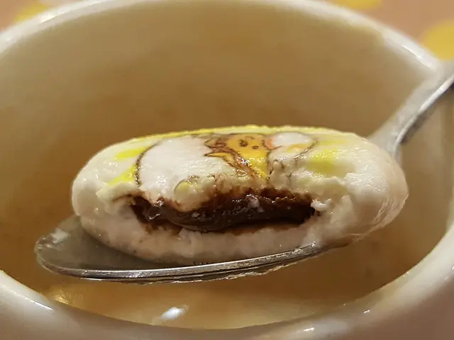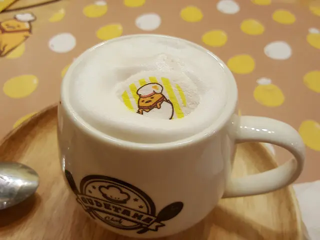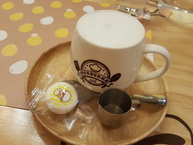 原本以為蛋黃哥圖案的棉花糖丟進拿鐵裡會融化,結果攪拌了好久好久,那棉花糖都沒有融耶!!根本無法跟拿鐵合為一體嘛!!