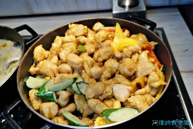 這三盤中間的是蒜香鳳爪,酸甜彈脆很好吃。