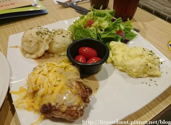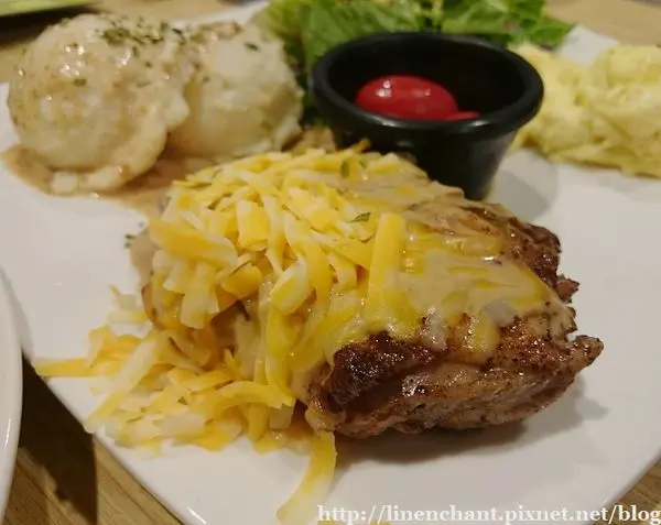 所以我很乖的把起司都弄掉,默默的吃雞腿排嚕.....雞腿排本身口感是軟嫩多汁,醃漬過的醬汁不會太過死鹹...如果搭著起司吃味道應該會更上一層...這天單吃口味也喜歡唷!!!