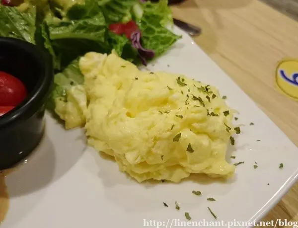 套餐看起來好豐富唷~~~~~有生菜沙拉、炒蛋、馬鈴薯泥、起司雞腿排...不是走滑嫩路線的炒蛋,通通給了小樂...幫小樂加些番茄醬就可以當早餐嚕!!!!