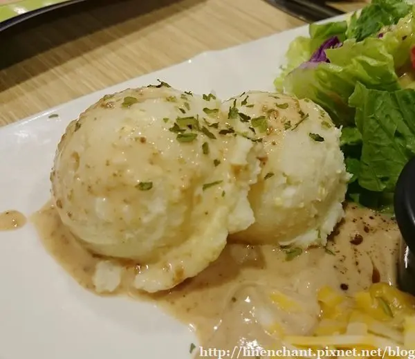 就是很簡單的馬鈴薯泥,最特別的就是淋上了胡麻醬....因為胡麻醬讓這個馬鈴薯泥超級加分的好吃啊!!!
