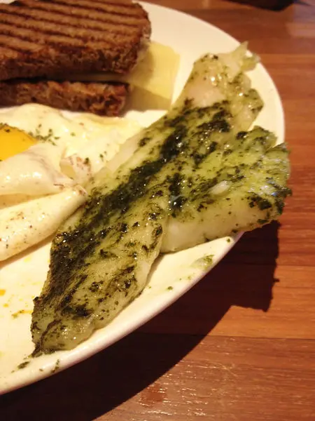 魴魚本身沒什麼味道,需要靠上面的羅勒醬提味