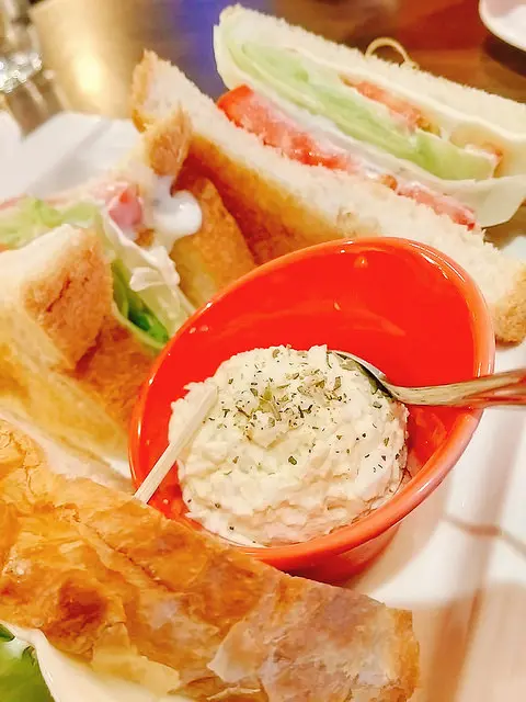 三明治的部份建議上桌就可以開動了!不然裡頭的沙拉會讓吐司濕軟掉