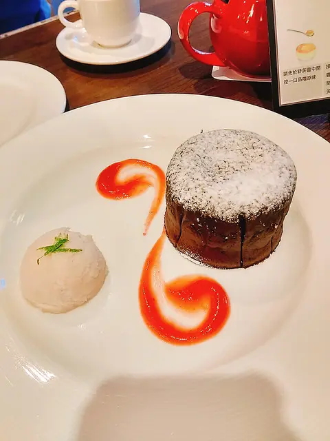 光看好像很甜齁? 錯了! 這巧克力熔岩嚐起來算苦~ 所以絕不會有甜膩的感受