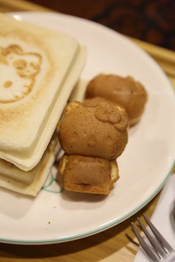 ▼厚片土司上頭烙上Kitty圖案,這叫人如何忍心咬下呀