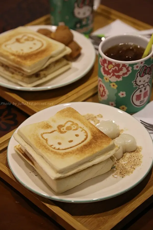 凱蒂營養土司套餐包含飲料,以及造型相當可愛的Kitty人形燒或麻糬