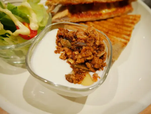 手工穀物脆片優格的穀物脆片本身帶有甜味,配上原味無糖的優格