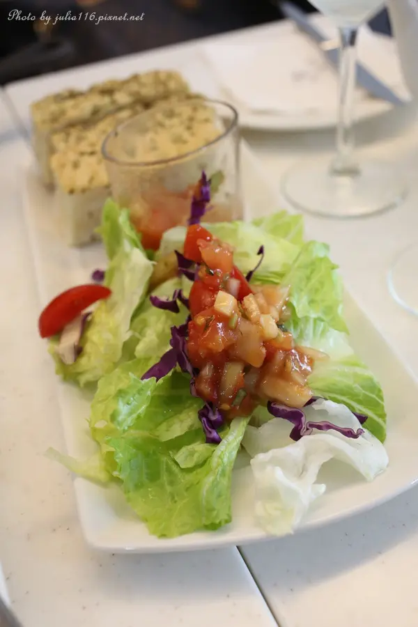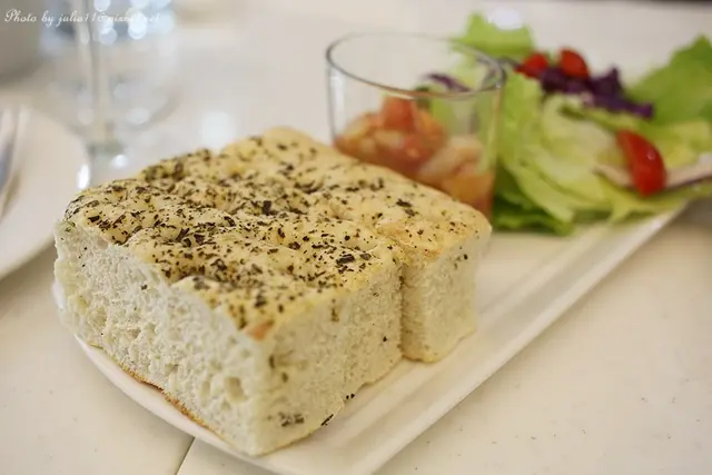 配菜同樣是佛卡夏麵包與生菜沙拉