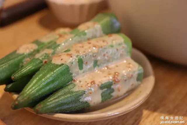 淋上胡麻醬汁的秋葵特別好吃,小菜口味清爽,沒有過多調味