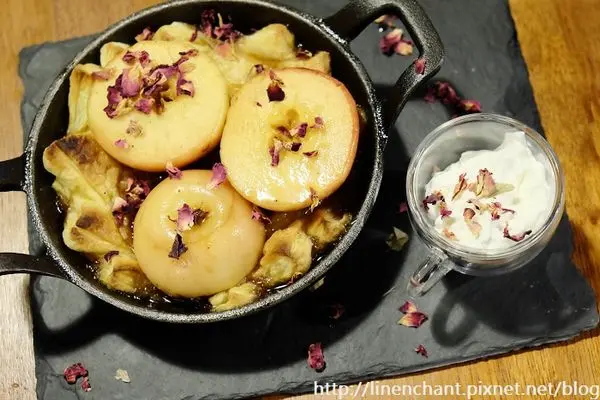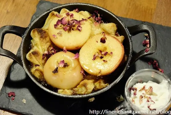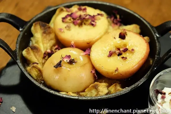 蘋果有先醃漬過,烤過以後甜味更明顯...吃起來還稍稍保留了蘋果的口感...