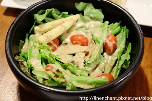 這裡的生菜用的是水耕蔬菜,淋上胡麻醬吃起來口感跟味道都很好...