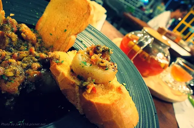 將紅蔥頭、蒜末、巴西里葉等加入醬料拌炒,可搭配法國麵包一同食用
