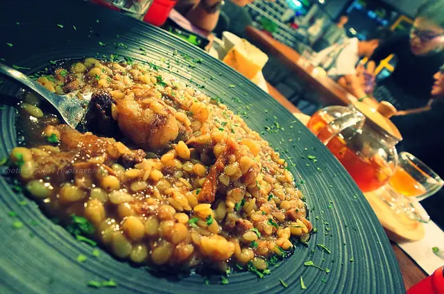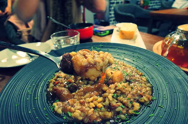 由於經長時間燉煮,牛肋條早已是入口即化、融在燉飯當中