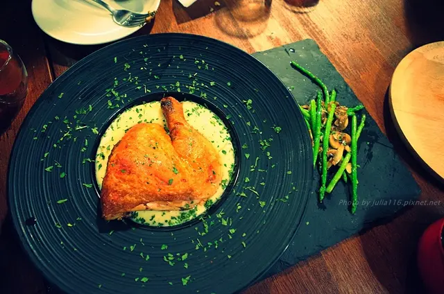 Mastro以雞腿取代鴨腿,經過長時間慢火油封、烘烤,改良成台灣人會喜歡的口味