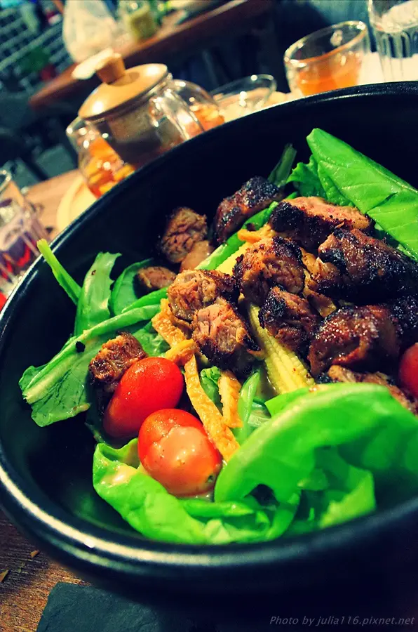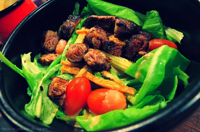 無農藥水耕蔬菜USDA Prime骰子牛排胡麻沙拉