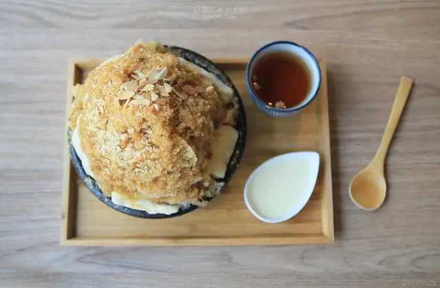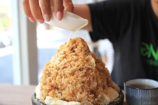 高聳的刨冰山丘 覆蓋上了厚厚的黃豆粉