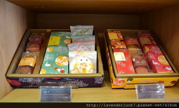櫃子裡展示的是最新節慶禮盒與經典暢銷商品