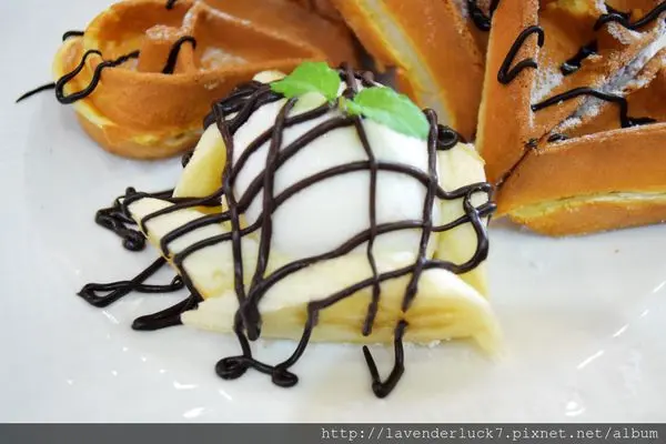 現在有芒果與巧克力香蕉可以選,個人還是偏愛乾的水果搭鬆餅