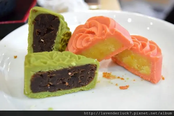 夾入紅豆,柚子醬與蔓越莓醬,為了表示中秋之月以蜜栗子取代鹹蛋黃