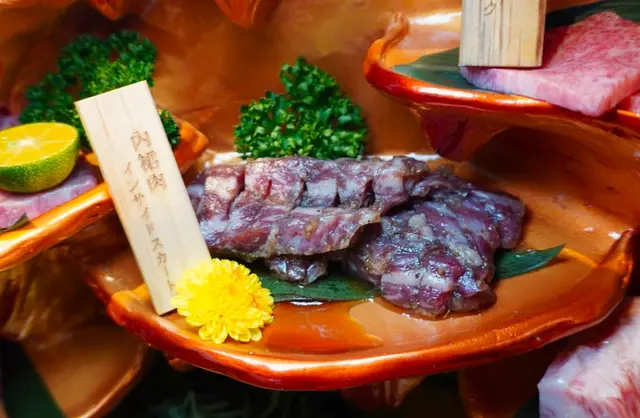 餐盤上肉品搭配採用全日本A5和牛,