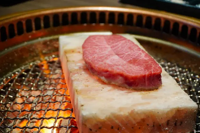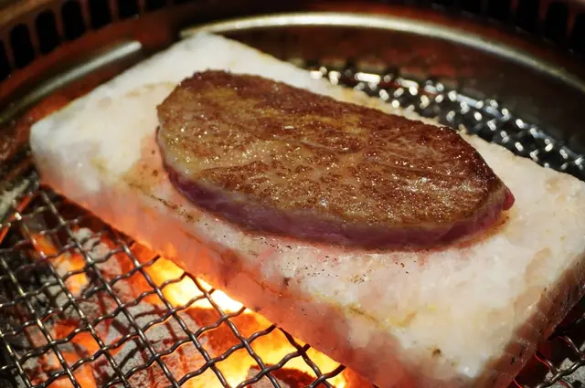 喜瑪拉雅玫瑰鹽岩烤過的A5板腱和牛,