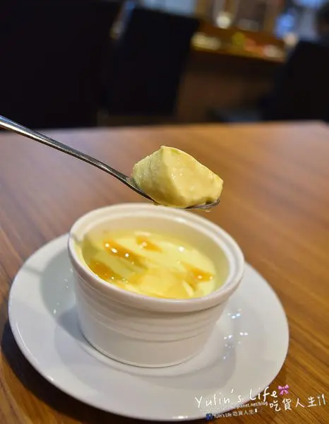 焦糖淋在上方,與綿密細緻的布丁搭配,香甜滑順,一口接著一口,甜而不膩,征服了Yulin的胃。