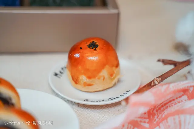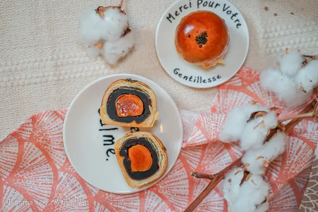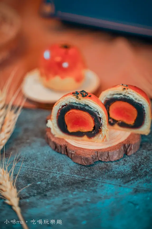 中間宛如滿月的鹹蛋黃是選用紅土鴨蛋黃製作,配上甜甜的內餡,細綿又帶點紮實的鹹香滋味,真的不輸各大蛋黃酥名店