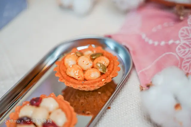 整體嚐起來帶點溫順的辣度,麥芽糖包裹的夏威夷豆中和了辣度,一點點辛香滋味反而更開胃,跟原本的豆塔很不一樣喔