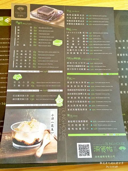 店家有涼菓子、小涼、冰淇淋小涼、冰沙、咖啡、巧克力&鮮奶茶、茶飲及果汁多種選擇~