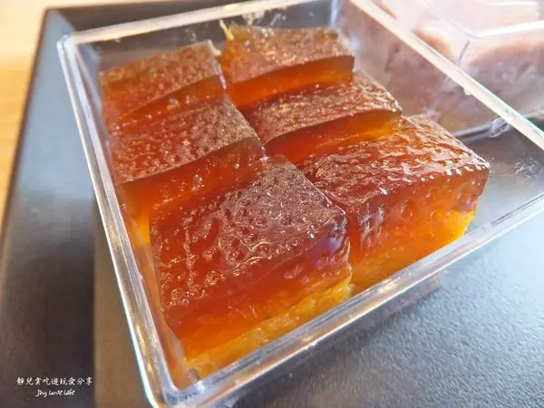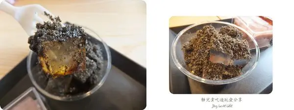 上下層的涼糕加了點黑糖中間搭配地瓜餡