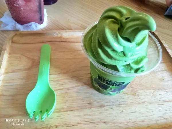 抹茶霜淇淋剛吃有點微苦,但是會越吃越順口,不會過於甜膩,真的超好吃