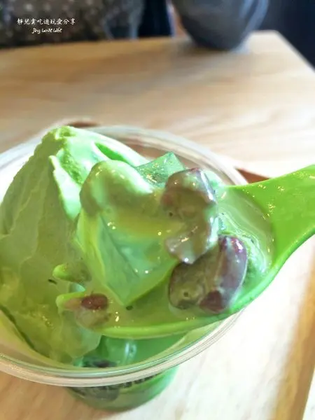 抹茶霜淇淋搭配紅豆下面還放著小涼糕