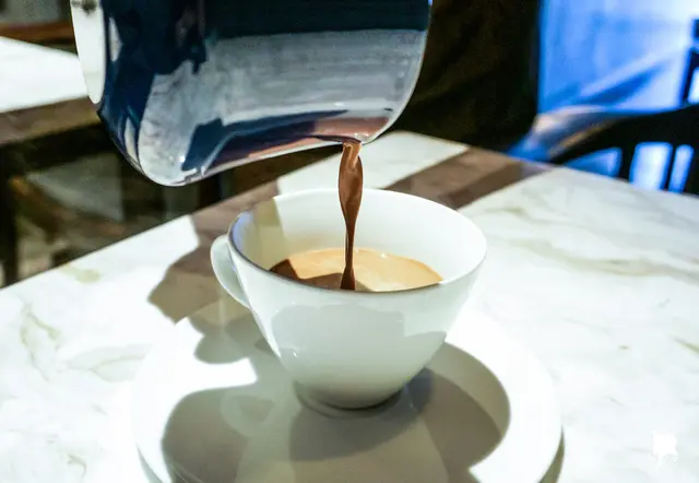 師傅現煮後,自鍋中直接倒入杯裡。