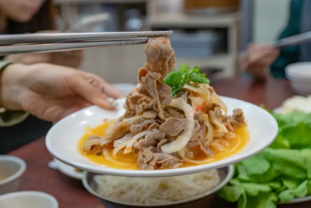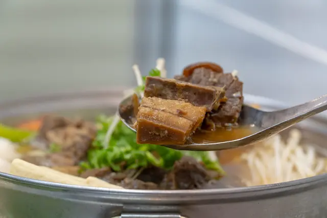紅燒羊肉爐附的三層肉份量很足,原本還在張望需不需要單點羊羔片,結果完全不需要